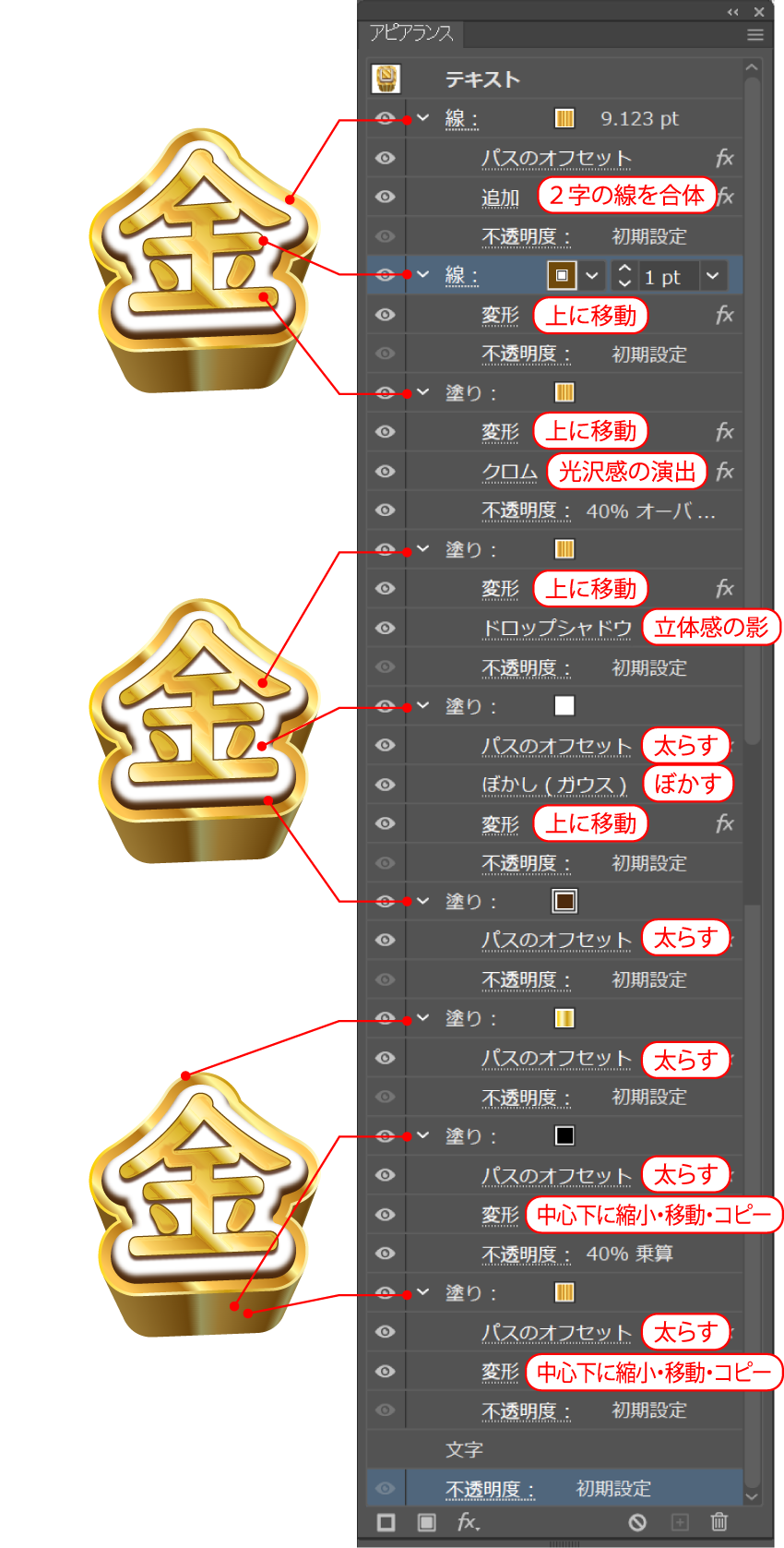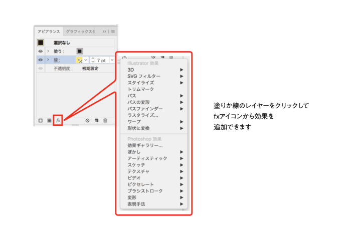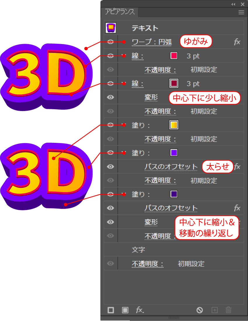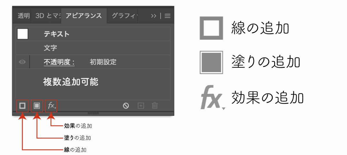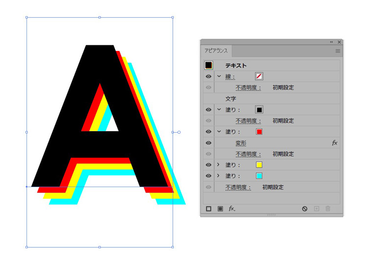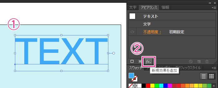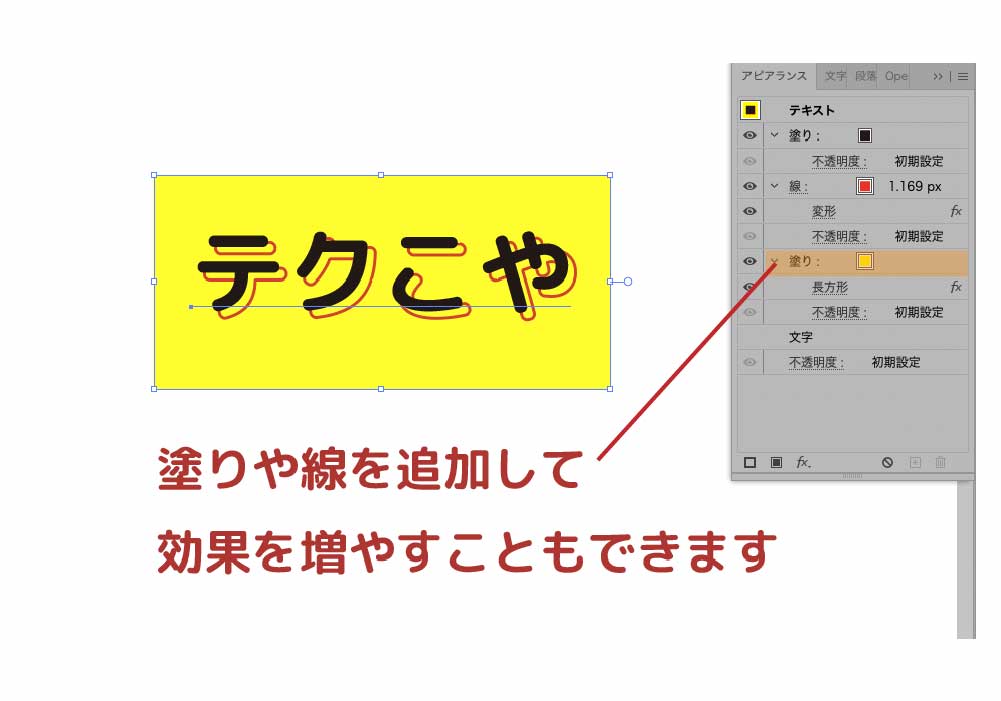 イラレ アピアランスパネルを使った文字の編集方法を図解しますトンログ。