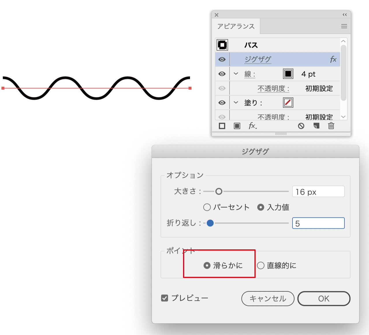 Illustrator アピアランス線をアウトライン化する方法ホームページ制作 オフィスオバタ。