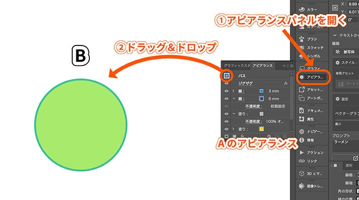 Illustratorでアピアランスを別オブジェクトに簡単にコピーする方法インフォコネクト株式会社。