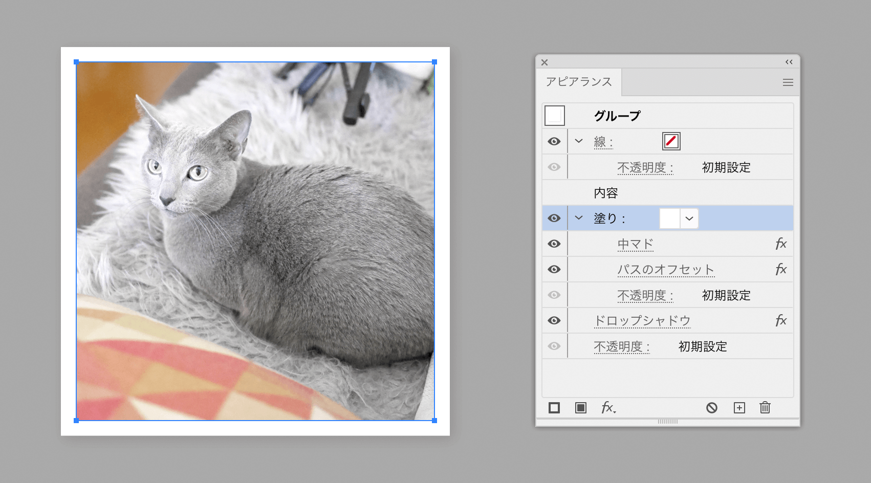 Illustratorで配置した画像に アピアランスで フチを付けたり、ドロップシャドウを設定する - DTP Transit。