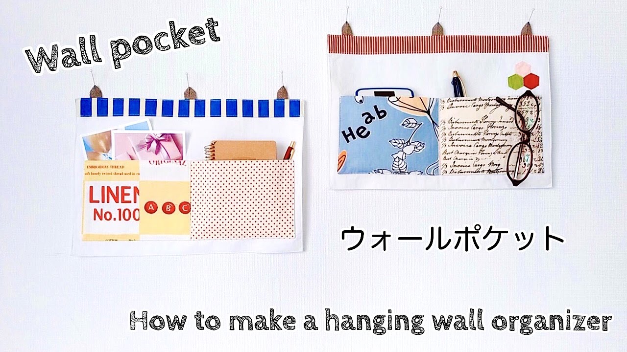 ハンドメイド ウォールポケットのつくり方 How to make a hanging wall organizerハギレで作る小さめウォールポケット。