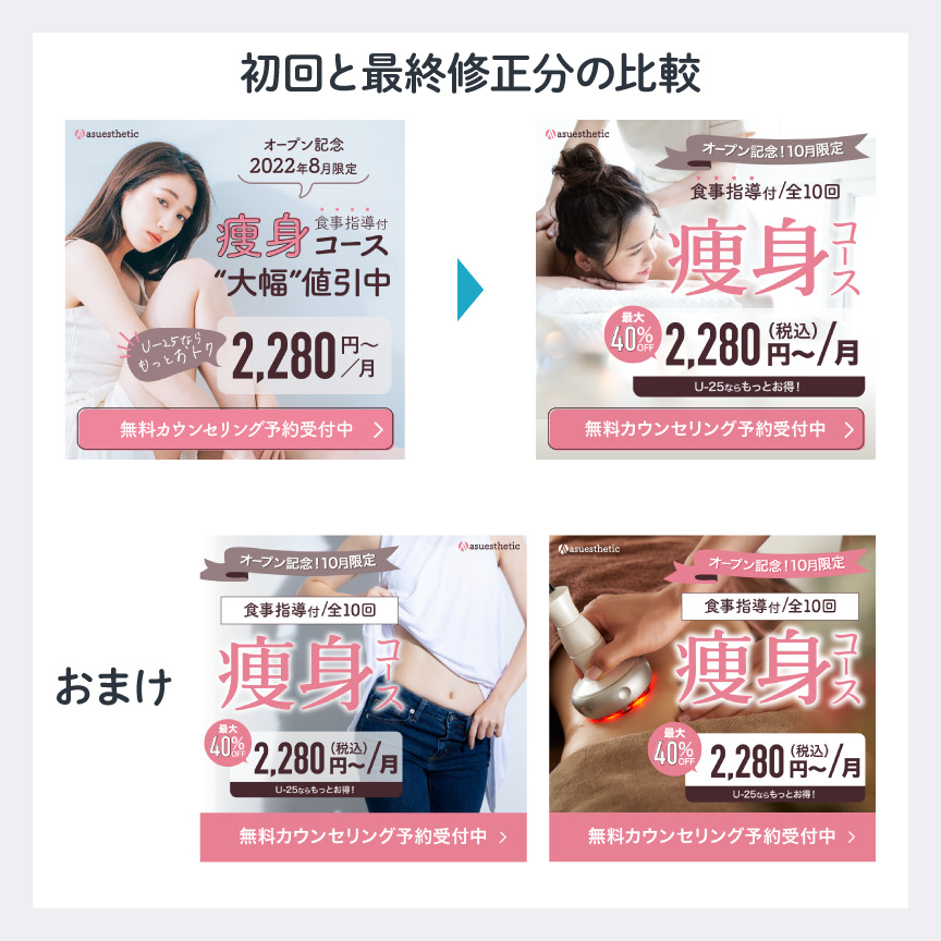 バナー制作千本ノック 女性がターゲットの商品・サービス Vol.1-1 「美容系のバナーデザインのポイントは?」 - リスティング広告 運用代行ならASUE。