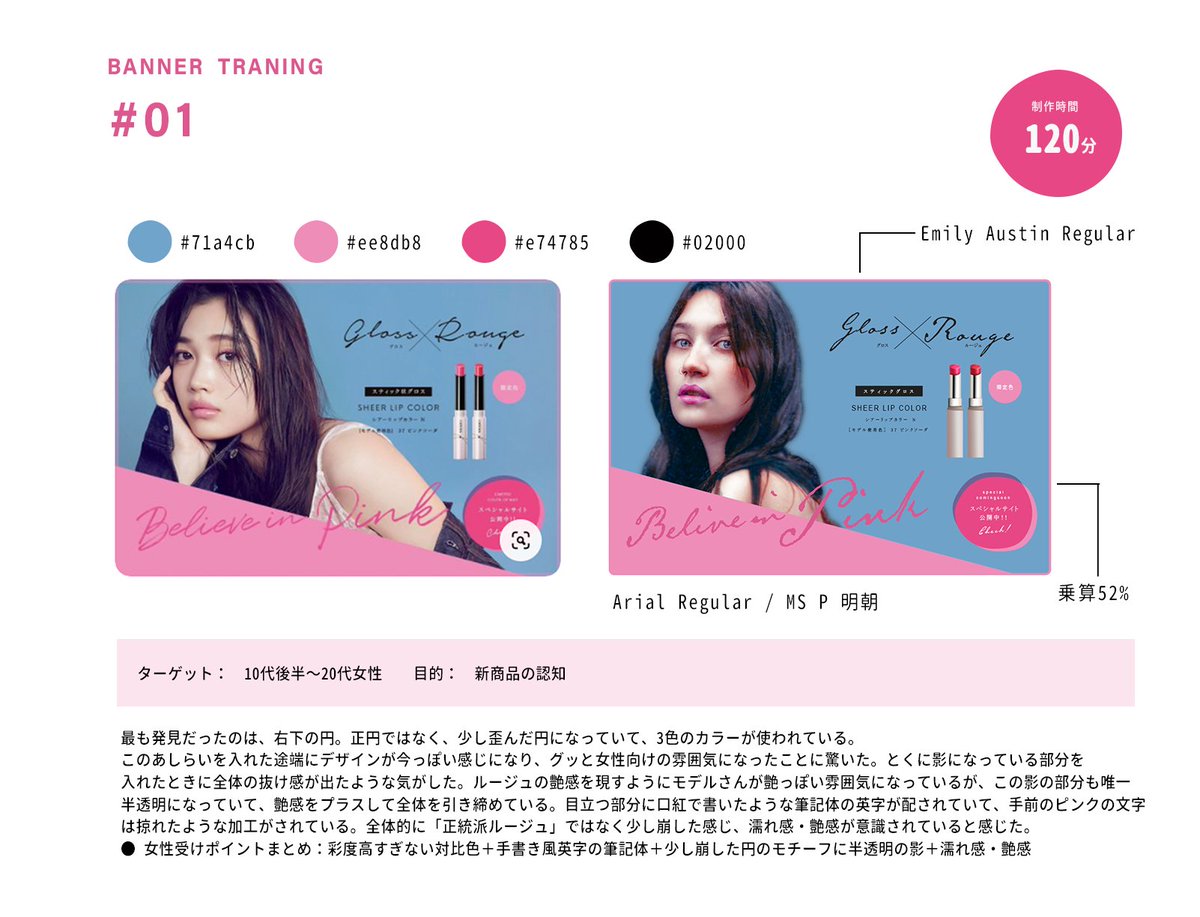 しいのき on X: "女性向けバナーの勉強のため、 バナー模写30本ノック1日目!💮 ‥分析までやってると 12時になってしまった😱でも1個目にしてめちゃくちゃ勉強になった‥!女性ウケのポイントが盛り込まれていた‥!!さすがオペラさん。しいのきバナー練習webデザイン。