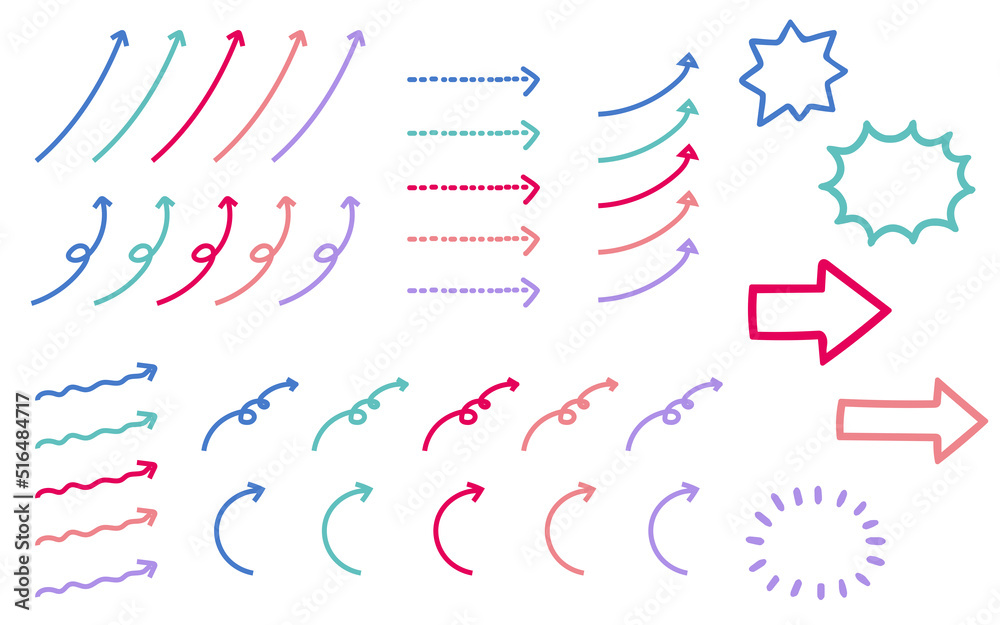 くるんと曲がった手描き矢印のイラスト カラー251206647 毎月1点無料 フリー のストックフォト イメージマート。
