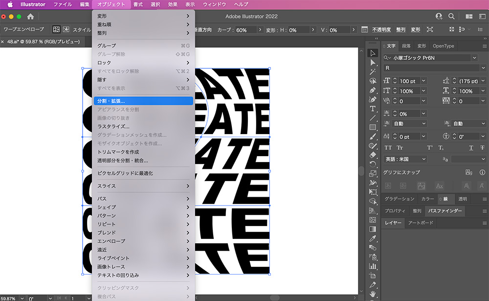 Illustrator 文字を複雑にぐにゃりと歪ませる方法 エンベロープS.Design.Labo。