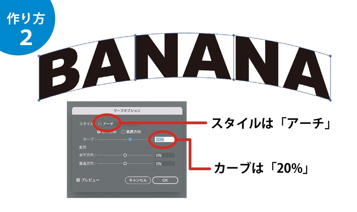 イラレ アーチ状にカーブした文字を作る2つの方法デザナル。