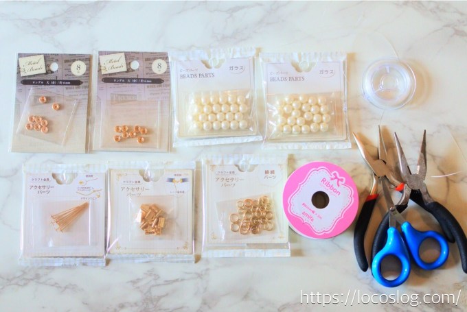 100均チャレンジ セリアのパーツを全部使ってアクセサリー作ります。