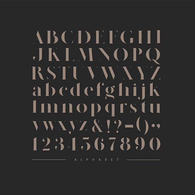 スタイリッシュなエレガントなフォント 英語のアルファベット 大文字 小文字の文字と数字 茶色Premiumベクトル素材。