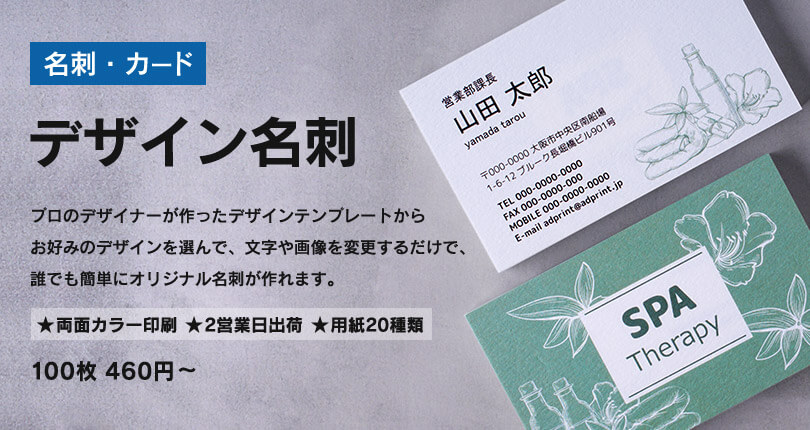 デザイン名刺印刷 商品情報と価格表:大阪市北区の印刷店ロケットプリント。