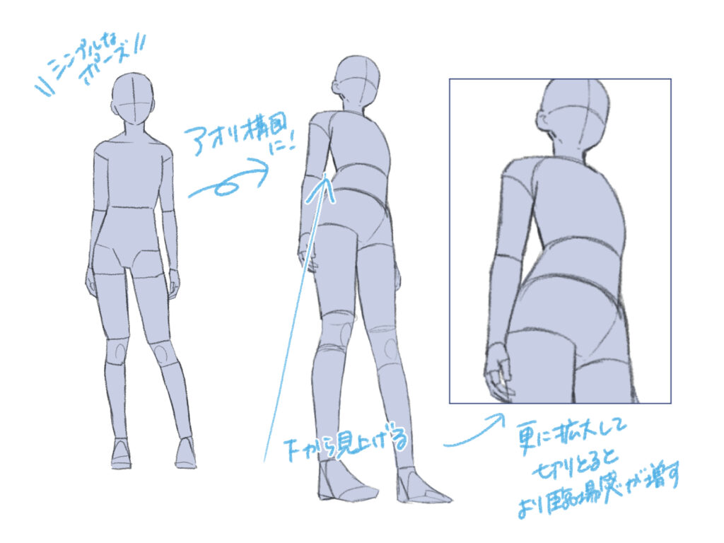 アオリの体の描き方解説!アオリ構図のバランス崩れ・歪みを解決へ - イラスト・漫画 マンガ 教室 egaco エガコ。