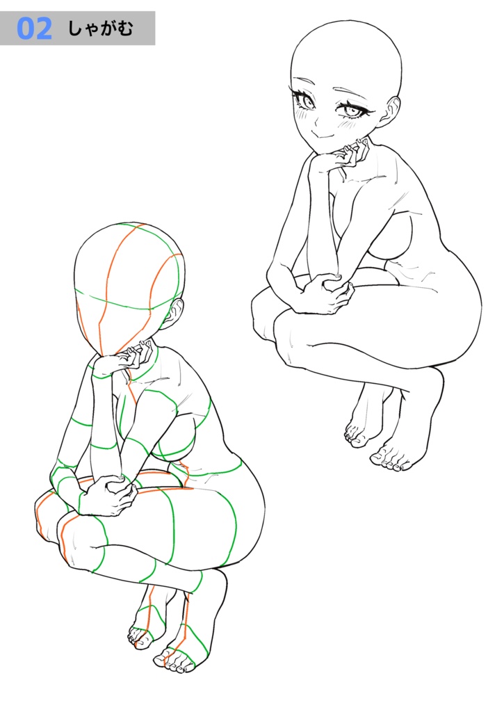 イラスト 簡単!しゃがみ姿の「アタリ」の描き方 最後に実演あり。