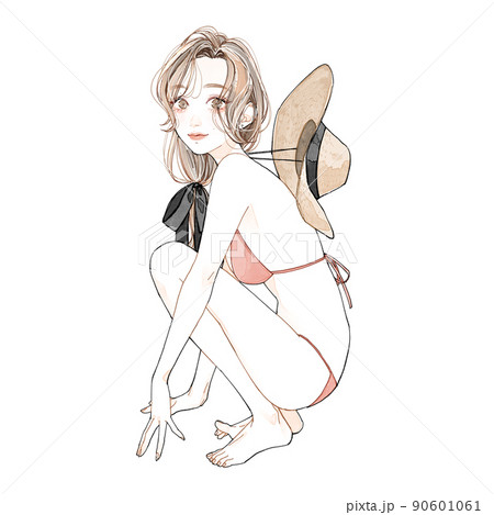 女の子がしゃがんで座っているポーズ イラストトレス素材- illust-pose。