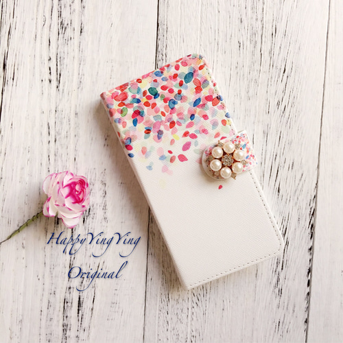 スマホケース 全機種 シールタイプ 花びら☆真珠 手帳型 カラフル iPhoneケース・カバー SANA Design サナデザイン通販3464075Creema クリーマ。