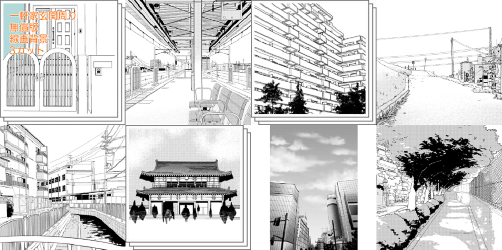 ClipStudio 無料の漫画背景カット素材 屋外3 人気おすすめ素材まとめ - 物覚え雑記帳。