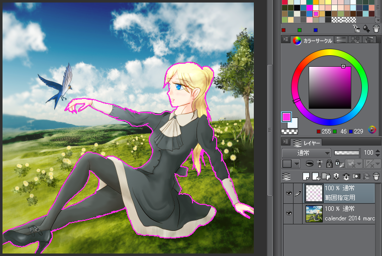 SAIでも描ける簡単でシンプルなキャラ背景の描き方おえかきの庭。