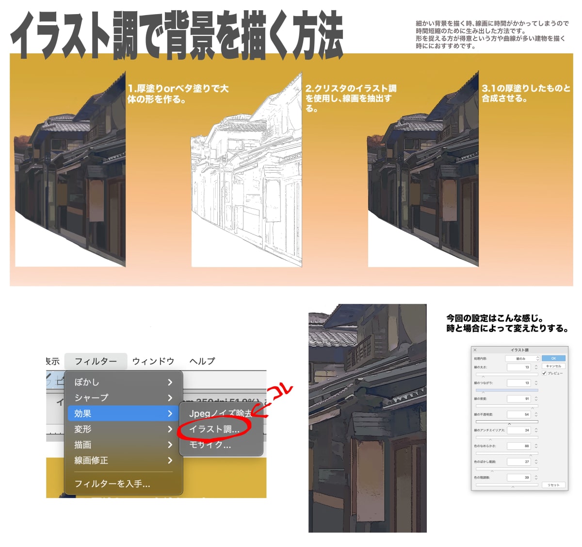 簡単6ステップ!写真からアニメ風の背景を作るテクニックイラスト・マンガ描き方ナビ。