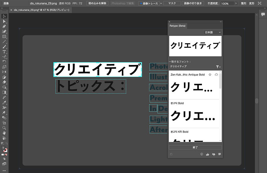 PC-Webzine - 名前が不明なフォントをすぐに検索!便利なAdobe Illustrator「Retype」。