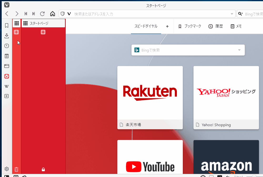 デスクトップ版 タブを左に表示して二段タブスタックを固定した状態でタブにマウスポインターを持っていくと、タブのアイコンが左にずれるVivaldiForum。