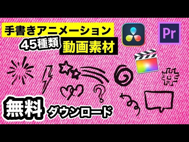 無料ダウンロード 手書きアニメーション動画素材DaVinci ResolveAdobe Premiere ProFinal CutProアクセントアニメーション。