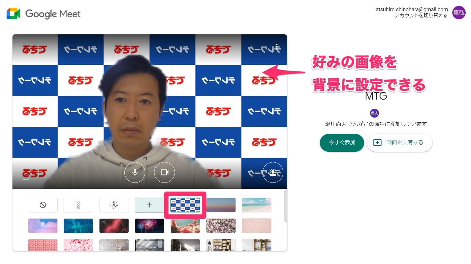 Google Meetの新機能 バーチャル背景を設定する方法。