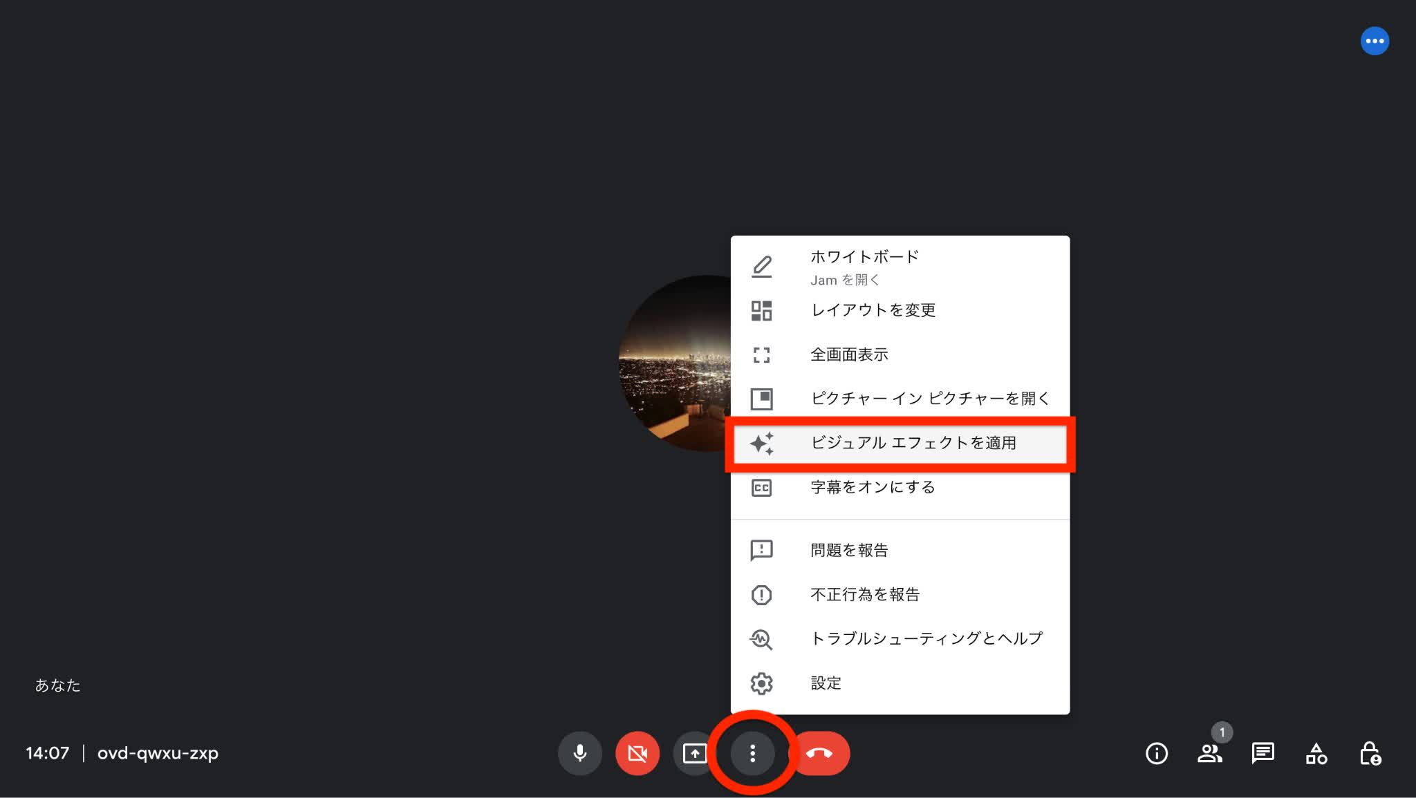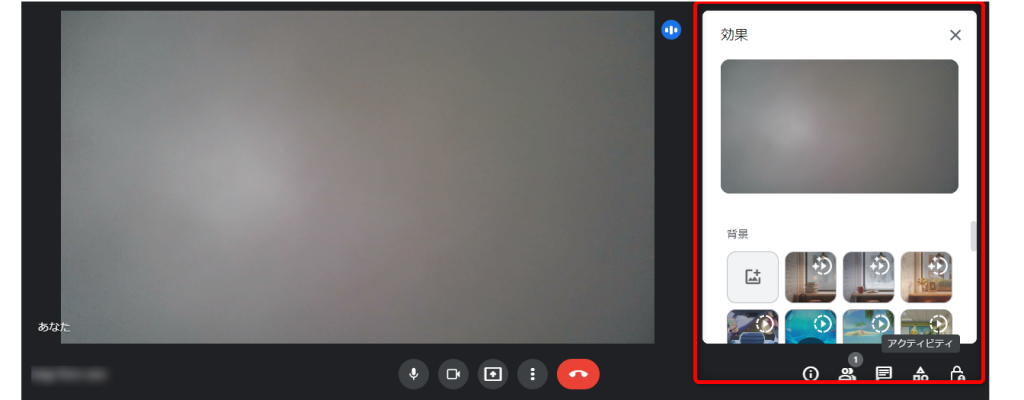 Google Meet 会議画面の背景をぼかす方法PCエトセトラ。