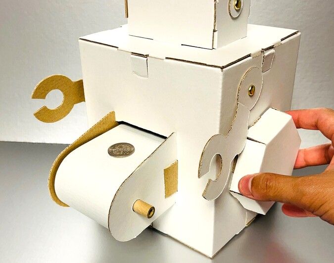 モーターで動く!ダンボール貯金箱 💰 , ダンボールとモーターを使って、自分で作った貯金箱をプログラミングで動かしてみよう!,embotを使えば、プログラミング初心者でも大丈夫。スマホアプリで簡単にプログラミングができるから、夏休みの自由研究にもぴったりだよ!☀️,embot貯金箱 , https:amzn.asia d 1vRkUSI,embotダンボール工作貯金箱工作。