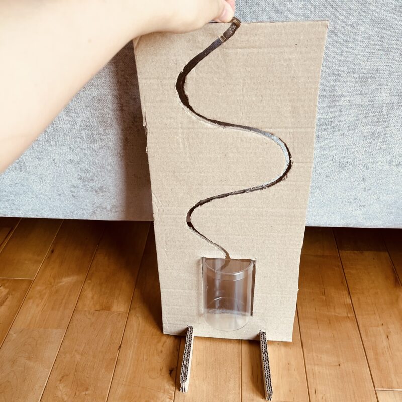 ダンボール、スチレンボードでお金を投入するとレール上を転がるコロコロ貯金箱を作ってみました。制作動画はyoutubeにアップしています。 ペーパークラフト ダンボール工作 コロコロ貯金箱 知育。