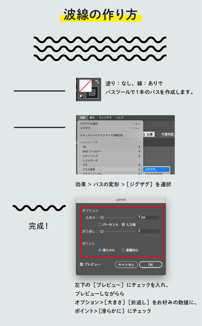 Illustrator イラレで波線・破線を作る方法アピアランス効果デザイン事務所 MONO JOURNAL。