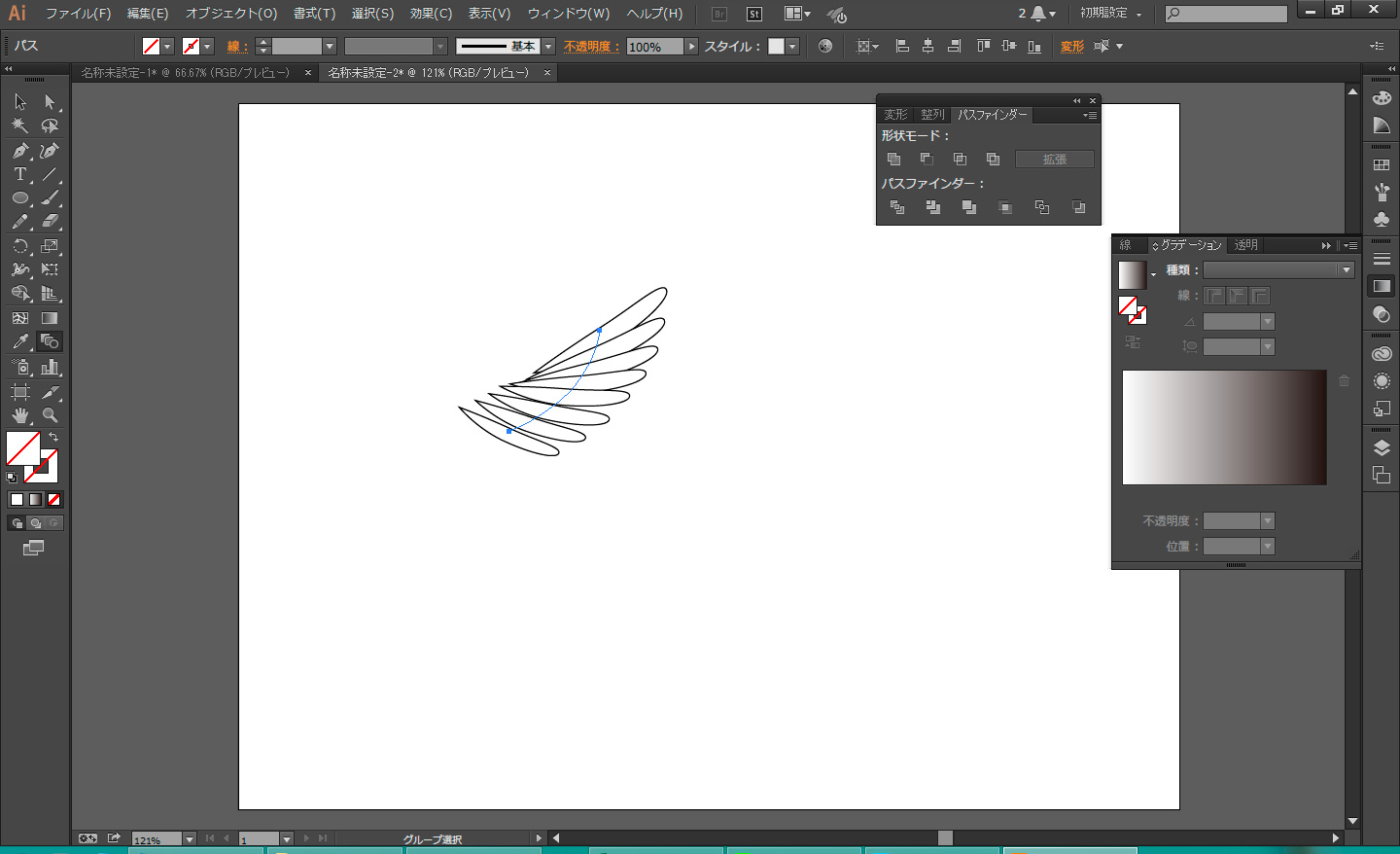 illustratorのブレンドツールで羽根的なものを描くamuamu。