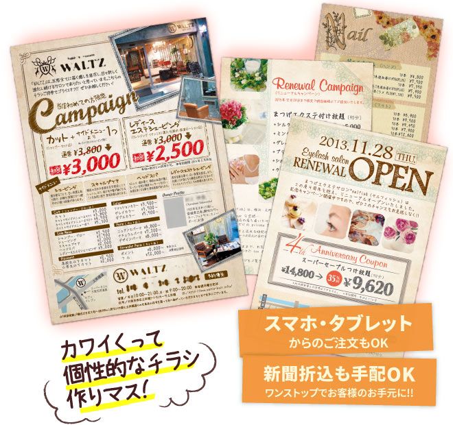 サロン開業」×「美容室チラシ印刷」あなただけの“オンリーワン”デザイン美容チラシ リーフレット・パンフレット作成-エステ・ネイル・クリニック・ヘアサロン。