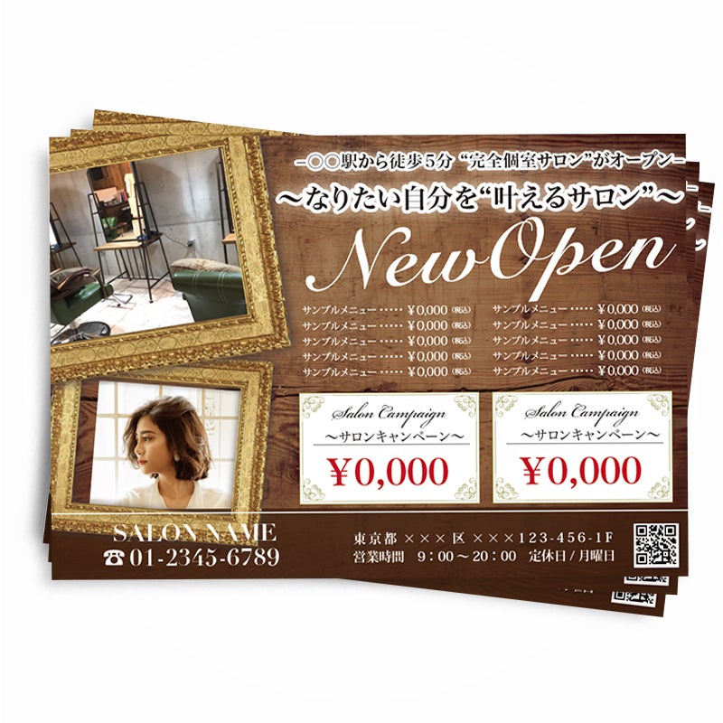 美容室サロンのオープン用2チラシ印刷のロケットプリント。