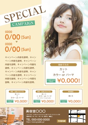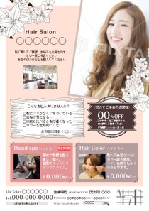 美容室・ヘアサロン_特売・キャンペーン・商品紹介チラシ・フライヤーの無料デザインテンプレート - ネット印刷グラフィック。