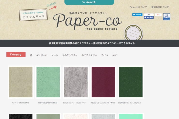 Paper-co紙のテクスチャー素材を無料でダウンロードできるサイト。