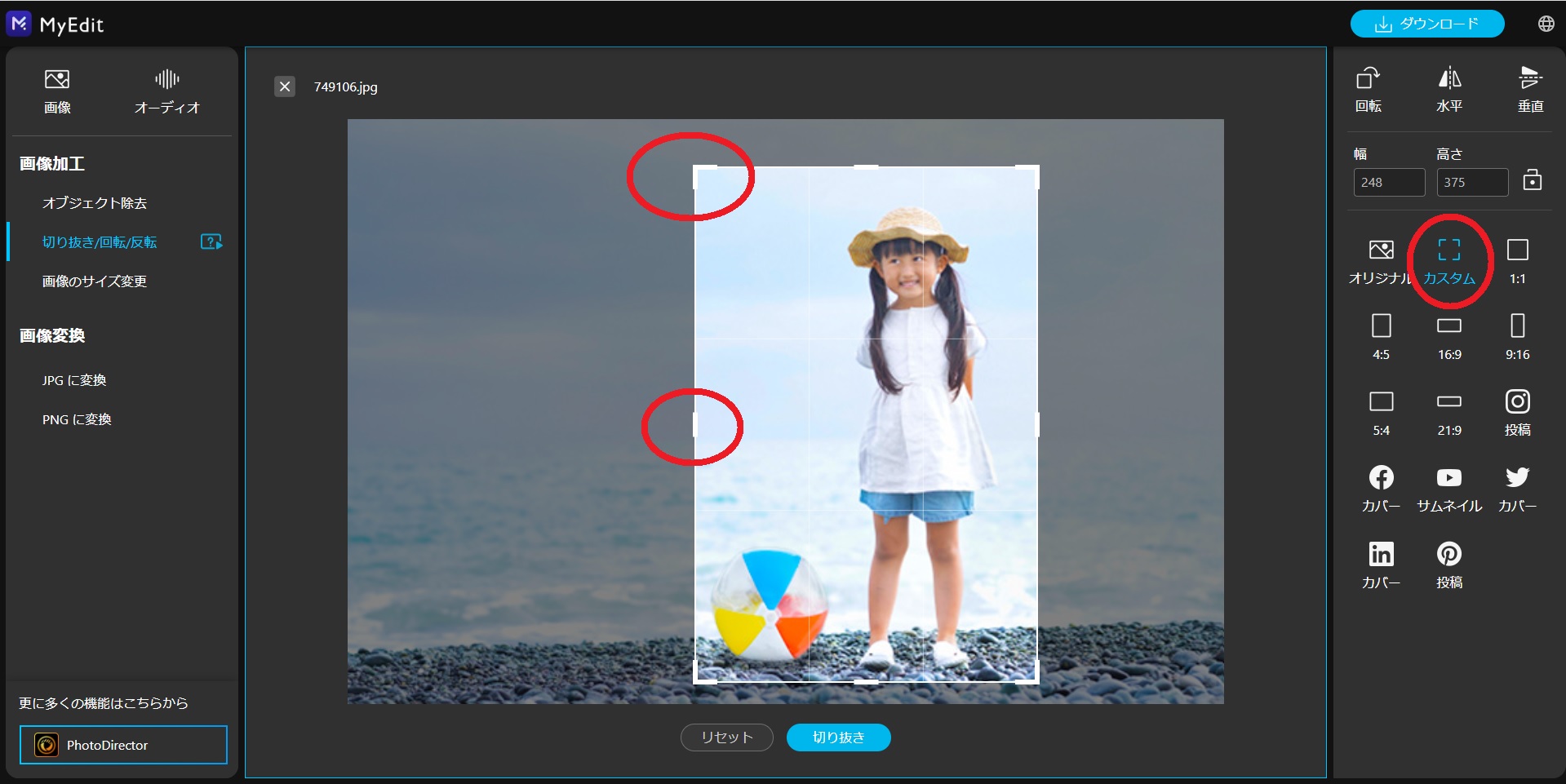 画像を丸く切り抜く。オンラインで無料で写真を円形に切り取りCanva。