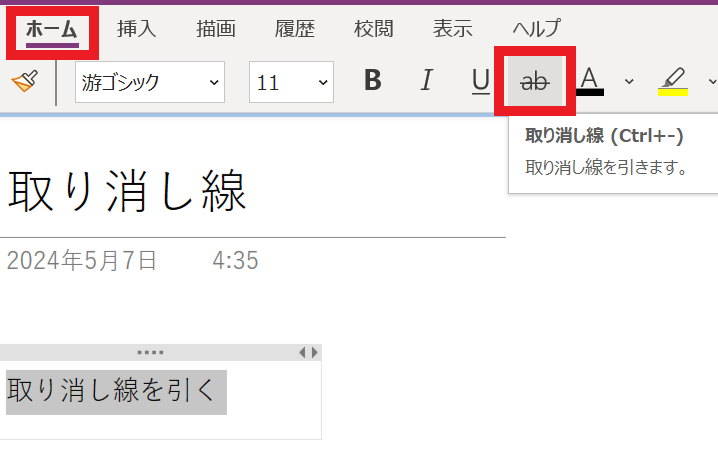 OneNoteの取り消し線ショートカット一瞬で行全体に線を引く方法仕事攻略本。