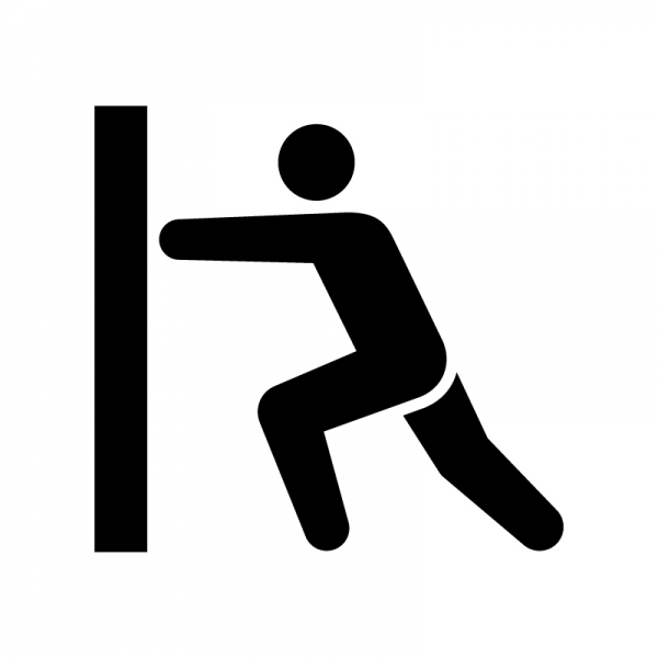 壁を押す人のシルエット無料のAi・PNG白黒シルエットイラスト。