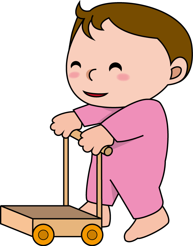 イラストポップの幼児教育素材 乳児No24手押し車を押す女の子の無料イラスト。