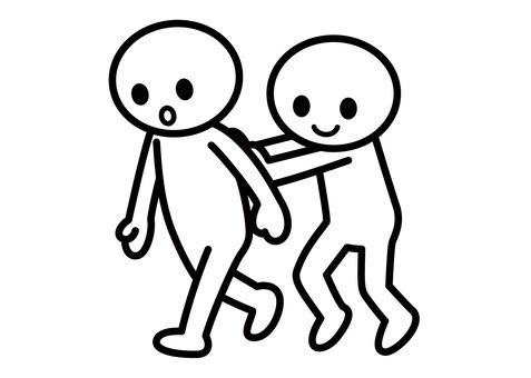 世話焼き応援する背中をおす - 人物イラスト無料素材。