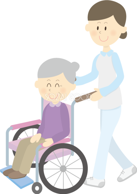 車いすを押す女性看護師イラストレイン🚂 - イラスト無料素材。