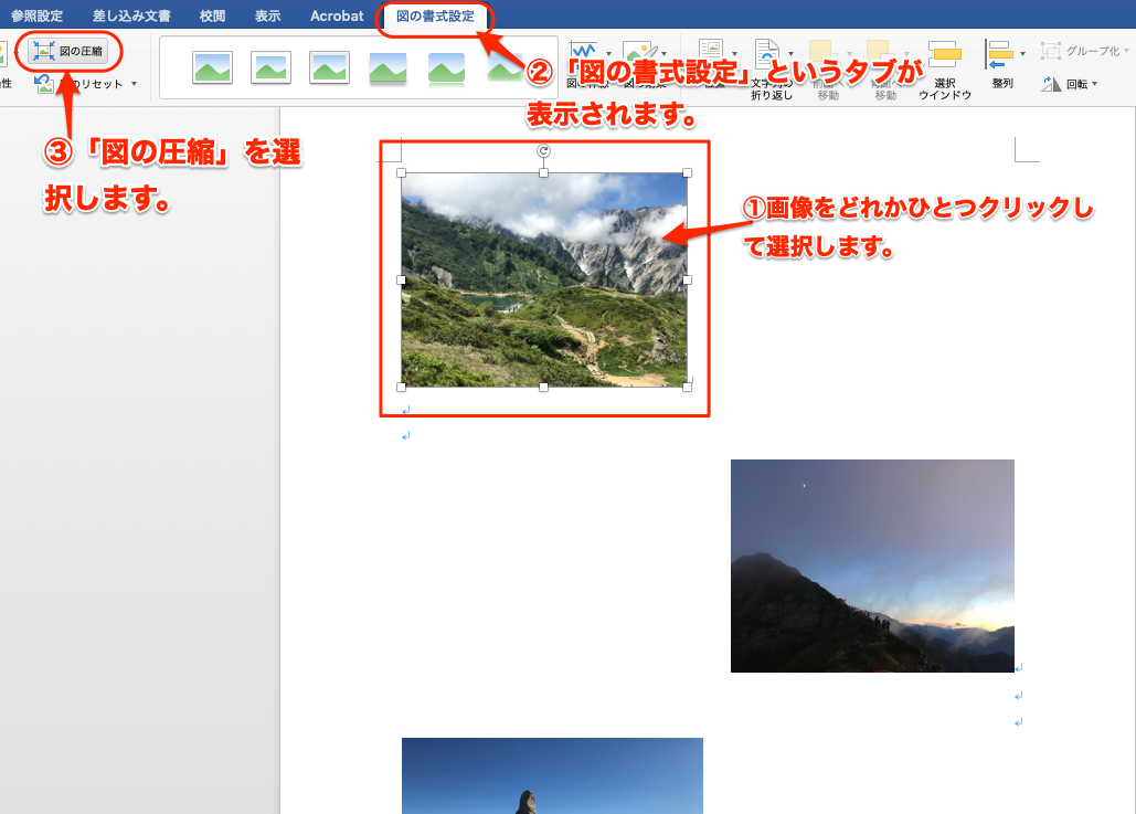 画像の圧縮 図の圧縮 でファイルサイズを小さくする:Word ワード 2013基本講座。