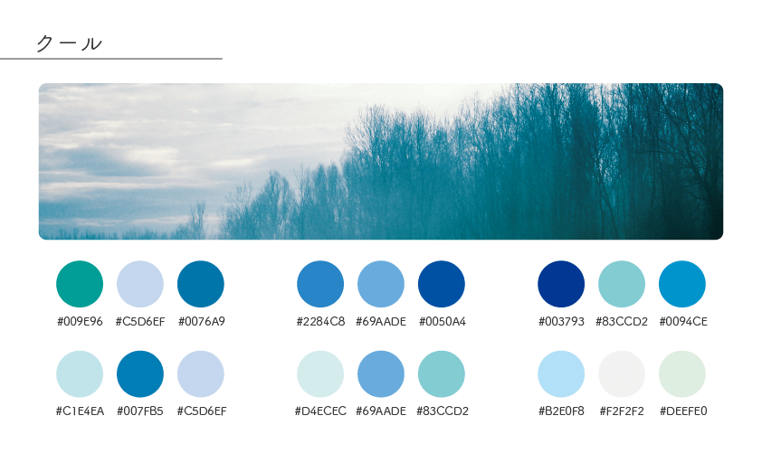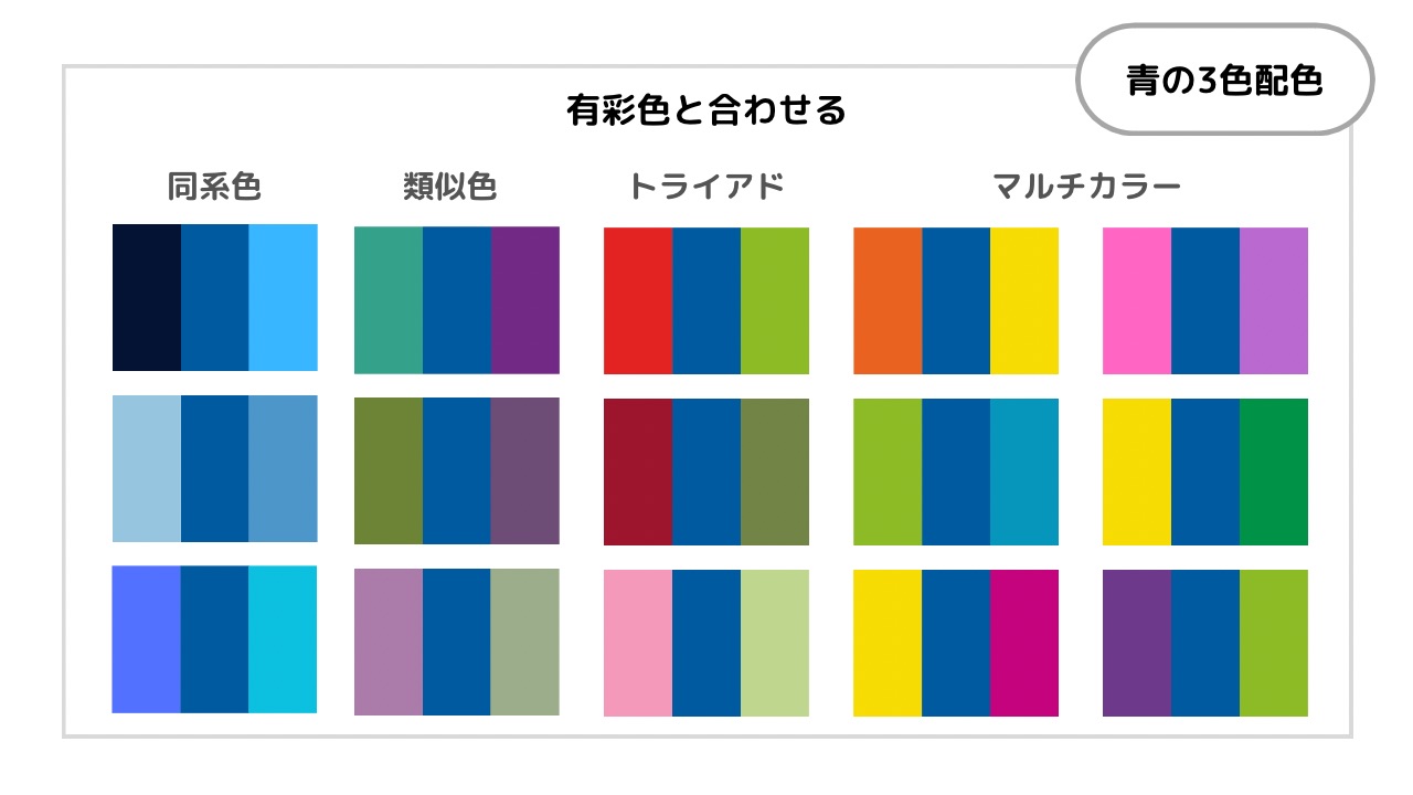 温かみのあるブルーの配色色彩101®カラーコーディネートと色彩学習。