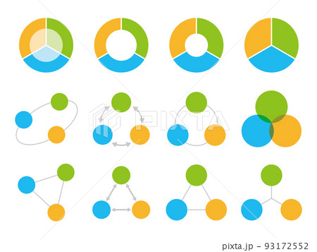 オレンジと水色と黄緑の柔らかい色味の3つまたは3分割円のチャートのグラッフィック素材セット 白背景のイラスト素材93172552- PIXTA。
