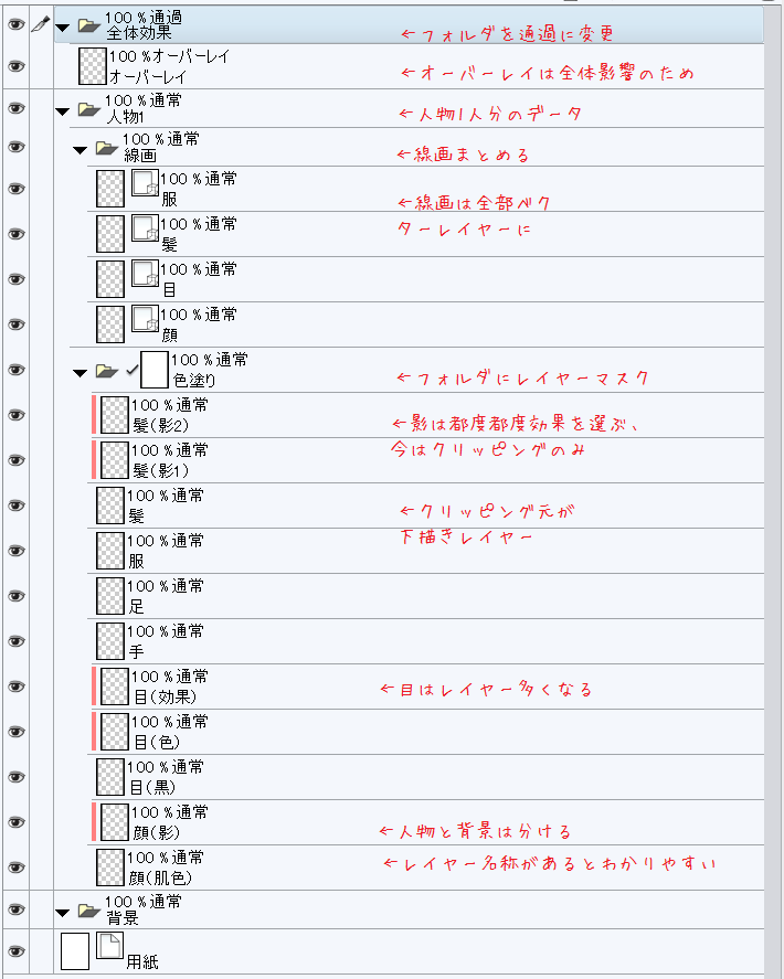 おすすめ イラスト用レイヤーのおすすめ構成、フォルダの分け方 クリスタxxfiction。