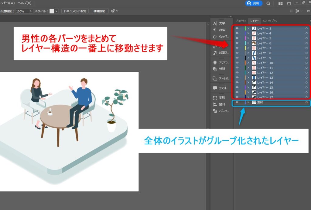 Aeキャラクターアニメーション Aiでの効率よいレイヤー分けの方法-AfterEffects,illustrator-🔰映像編集ワークショップ。