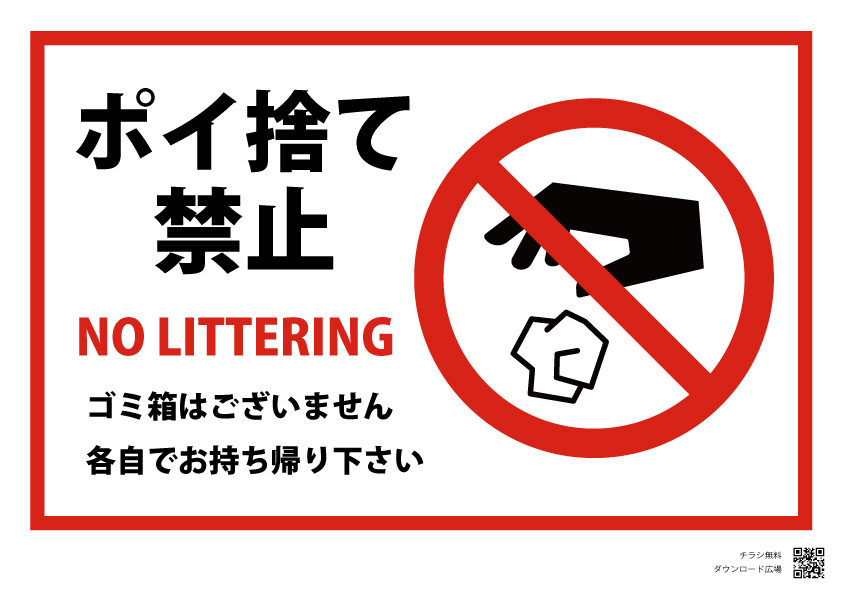 フリー素材」ポイ捨て禁止のポスター・張り紙テンプレートを簡単ダウンロード!「エクセル・PDF・ワード」:イラスト無料。