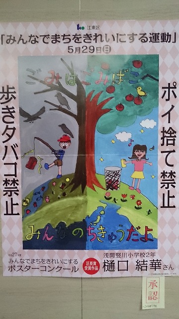 ポイ捨て禁止のポスターを見て今までの活動深川海さくら。