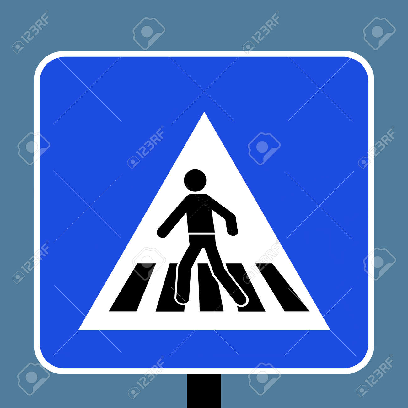 道路標識横断歩道。横断歩道、歩行者用交差点の警告交通標識は青とポールで表示されます。の写真素材・画像素材 Image 182845220。