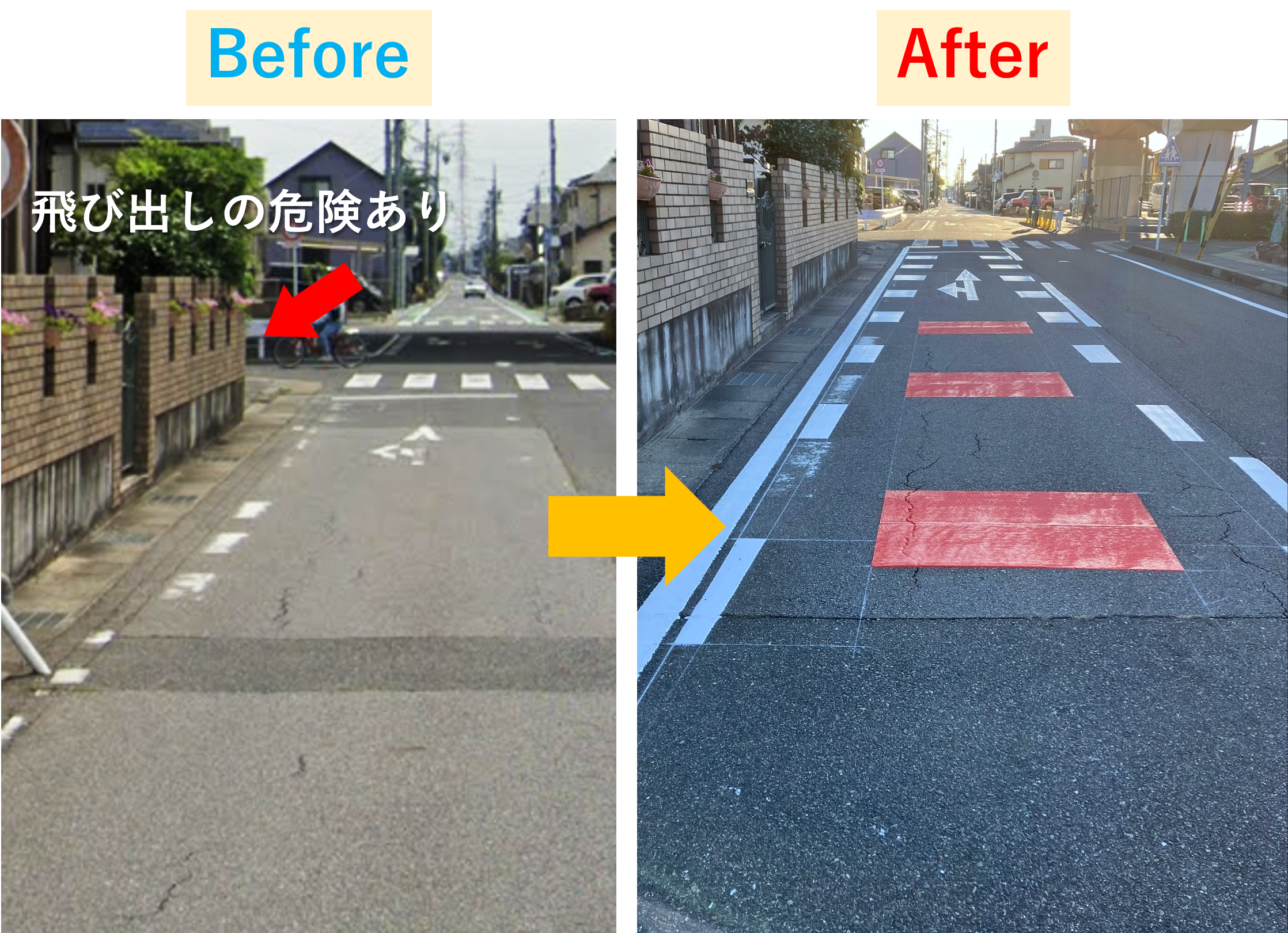 実績 皆様のお声をカタチにしました !横断歩道手前の路面標示。