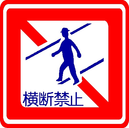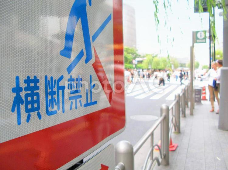 横断禁止の標識の向こうの横断歩道 - No: 24816417写真素材なら「写真AC」無料 フリー ダウンロードOK。