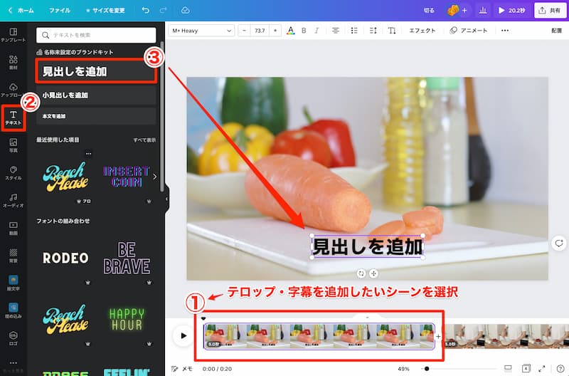 Canvaで動画編集 テロップを挿入・タイミング表示する方法。